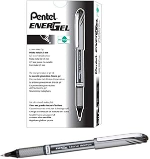 Pentel EnerGel NV Liquid Gel Pen, 0.7mm, Medium Line Capped, Metal Tip, Black Ink, Box of 12 (BL27-A) by Pentel