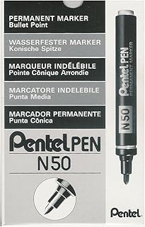 Pentel Pen. Product code: N50S / N50 / N60. Robust aluminium barrels. Bonded fibre tips retain their shape. Will write on almost any surface including cardboard, plastic, metal, wood, glass. Vivid waterproof ink. Bullet point (N50) or chisel tip (N60) Our No.1 range for years! Available in various point sizes. N60 | Pentel Stationery of Canada N60 Write a review Style: Chisel point/Pointe biseautée Tip size/Taille de la point: Medium/Moyen Refillable/Rechargeable: No Where to Buy PERMANENT MARKER Chisel point marker with permanent waterproof ink. Suitable for use on almost any surfaces. 1000m writing distance. MARQUEUR PERMANENT