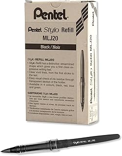 Pentel Arts Tradio Stylo Sketch Pen Refills, Black, Box of 12 (MLJ20-A) by Pentel