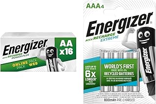 Energizer AA Akkus, Recharge Power Plus Akku, 16 wiederaufladbare Batterien AA & E300624400 NimH-Akku Rechargeable Extreme Micro (1,2Volt 800mAh, vorgeladen 4er-Packung)