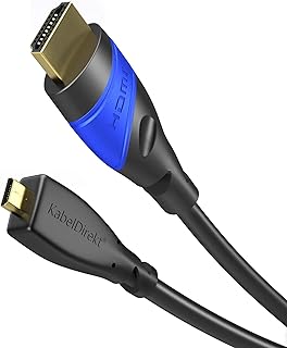 KabelDirekt – Micro HDMI Kabel – 3m (kompatibel mit HDMI 2.0a/b 2.0, 1.4a, 4K Ultra HD, 3D, Full HD, 1080p, HDR, ARC, Highspeed mit Ethernet, PS4, Xbox, HDTV) – Flex Series