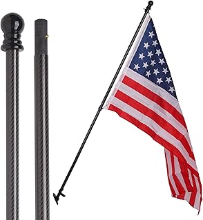 YLMGO Fahnenmast-Set mit 3 x 5 Amerikanische Flagge für Hausveranda, 1.8 m, robuste Karbonfaser, schwarz, Fahnenmast für LKW, Wandhalterung, Flaggenmast mit Halterung