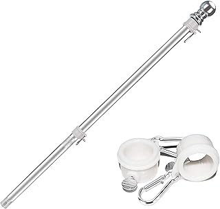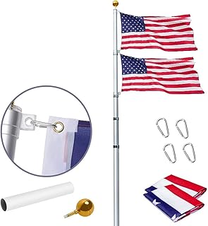 Yeesun Fahnenmast Set, 1.8 m amerikanische Flaggenmast & Halterung Fahnenmast für 3 x 5 Flaggenhalter, kein Verheddern und zur Wandmontage, Metall-Flaggenmast mit Flagge (Silber)