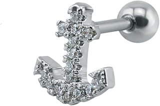 316L Edelstahl Tragus Helix Ohrstecker Anker Anchor Zirkonia besetzt Silber Damen