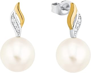 Ohrstecker für Damen, Sterling Silber 925, Zirkonia (synth.) Süßwasserzuchtperle