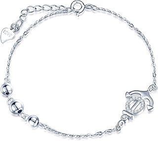 Einfach Damen Mädchen Anker Armband 925 Sterling Silber mit Zirkonia Armkette Verstellbar Charm Armkettchen Silber