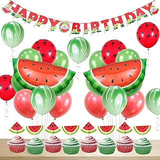 Wassermelone Party Dekorationen Geburtstag für Mädchen Happy Birthday Banner Wassermelone Achat Polka Dot Ballons Cupcake Topper