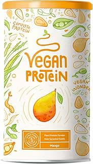 Vegan Protein - MANGO - Pflanzliches Proteinpulver aus gesprossten Reis und Erbsen - 75% Eiweißanteil - 23g Protein pro Portion - 600 Gramm Pulver