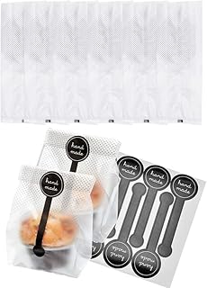 100 Stück OPP Beutel Durchsichtig Kekstüten Gebäcktüten Candy Bar Tüten Transparent Tütchen OPP Tütchen Cellophantüten mit 100 Stück Etiketten Aufkleber für Brot, Lutschern, Nüssen, Keksen, Snacks