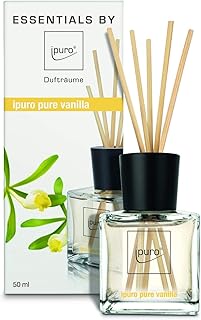 Ipuro Essentials Raumduft pure vanilla - Raumduft für ein köstlich gutes Raumklima - Lufterfrischer mit hochwertigen Inhaltsstoffen (50ml)- aus Glas mit Rattanstäbchen, IFC0089, Transparent