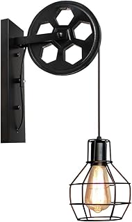 iDEGU Industrielle Wandleuchte, Wandleuchte, Vintage, Riemenscheibe, Wandleuchte, Innenleuchte, für Bar, Schlafzimmer, Wohnzimmer, Restaurant, Café, Flur – Schwarz