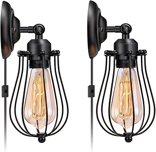 Licperron Drahtkäfig-Wandleuchter, Industriewandleuchte, E26-Sockel, Vintage-Stil, für Kopfteil, Schlafzimmer, Garage, Veranda, 2 Stück