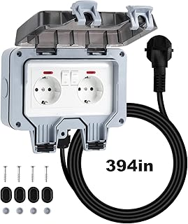 Vtuik Außensteckdose Steckdose mit 10m Kabel, IP66 wasserdichte Steckdose mit Schalter und Kontrollleuchte, 2 fach steckdose aufputz, für Drinnen & Draußen,Garage,Schwimmbad,Garten