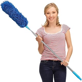 HTLY SPR Staubwedel mit Spinnennetz-Bürste, ausziehbare Stange bis zu 254 cm, biegbarer Mikrofaser-Staubwedel für die Reinigung von Deckenventilatoren, hohen Decken, hohen Fensterbänken usw. (blau)