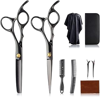 Profi Haarscheren Sets im Online-Shop beim Friseur Fachhaendler | Haarscheren / Messer Friseurhaarscheren Friseurscheren Sets Haarscherensets - meist mit einer Haarschere und einer Ausdünn - Effilierschere. Teilweise auch mit Rasiermesser und / oder Kämmen. Die komplette Ausstattung zum Haareschneiden. Profi Haarschere Set, Lzfitpot Edelstahl Schwarz Friseurscheren, 2 Scharfe Haarschneideschere, Friseursalon inkl.Haarschneideumhang Kamm Haarklammern Reinigungstuch Scherenregler & Etui bei Amazon.de | Günstiger Preis | Kostenloser Versand ab 29€ für ausgewählte Artikel