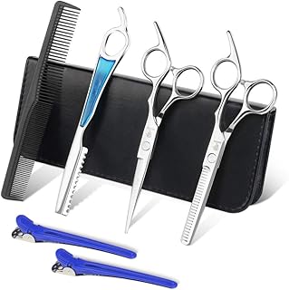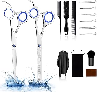 Haarschere Set,Profi Premium Scharfe Friseurscheren, Friseurscheren aus Edelstahl zum Ausdünnen und Strukturieren, mit Kamm/Clips/Lederetui/Bürste für Damen,Herren,Kinder,Haustier164526