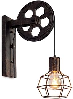 Kreative Persönlichkeit Aufzug Riemenscheibe Wandleuchte Höhenverstellbar Industrielle Vintage Retro Wandleuchte Laterne Nostalgische Eisenkäfig Harz Lampe Körper Wandleuchte Antike Bauernhaus Leuchte