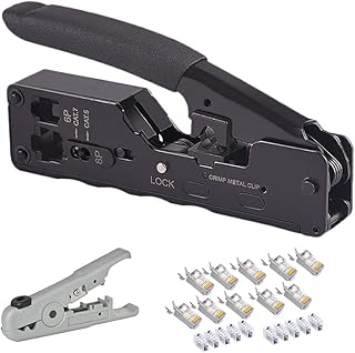 Universal Crimpzange für Modularstecker RJ45 Cat8 Cat7 / Cat6a / Cat5 / Cat5e und RJ11 / RJ12 ( zb. Telefon) Kompatibel mit allen RJ45 geschirmt & ungeschirmten Stecker, RJ45 Cat5e Stecker, RJ45 und RJ11/12 Stecker. Sehr kompaktes und handliches Design. Einfach zu bedienen mit einer Hand. Geeignet für Stecker mit Metallclip ( Zugentlastung) RJ45 Crimpzange Universal Werkzeug für Modularstecker RJ45 Stecker Cat7 Cat6A Cat5 ( Zugentlastung) / 6/8 Polige -Netzwerkkabel Verlegekabel RJ11 / RJ12-Netzwerk- / Telefonkabel (Crimpzange, Profi) - Kostenloser Versand ab 29€. Jetzt bei Amazon.de bestellen!
