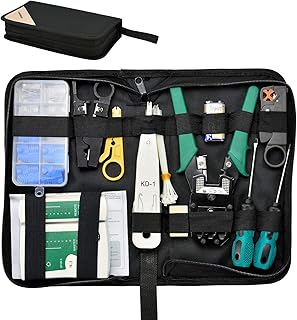 Universal Crimpzange für Modularstecker RJ45 Cat8 Cat7 / Cat6a / Cat5 / Cat5e und RJ11 / RJ12 ( zb. Telefon) Kompatibel mit allen RJ45 geschirmt & ungeschirmten Stecker, RJ45 Cat5e Stecker, RJ45 und RJ11/12 Stecker. Sehr kompaktes und handliches Design. Einfach zu bedienen mit einer Hand. Geeignet für Stecker mit Metallclip ( Zugentlastung) Das 4-teilige Werkzeugset für Netzwerke von Intellinet bietet Installateuren alle essenziellen Komponenten für Verkabelung und Kabeltests. Zum Lieferumfang gehören eine Crimpzange für 8-polige (8P8C) Modularstecker, eine LSA-Auflegewerkzeug, ein Abisolierwerkzeug sowie ein Kabeltester für RJ11-, RJ12- und RJ45-Kabel. Ideal für den Außendienst erhalten Sie all dies in einer praktischen, robusten Transporttasche mit Reißverschluss.