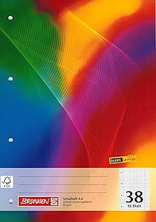 Schulheft/Rechenheft BRUNNEN 16 Blatt - Din A4/Lineatur 38 (5 mm kariert mit Randlinie/perforiert und gelocht)