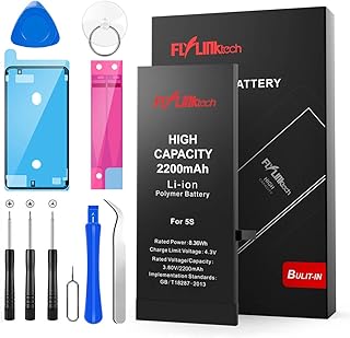 Akku für iPhone 5S mit Hoher Kapazität, 2200mAh Ersatzakku iPhone 5S Li-Ion Interner Akku, Reparaturset mit Anleitung & Ersatz Klebestreifen Set, Funktioniert mit alle original APN