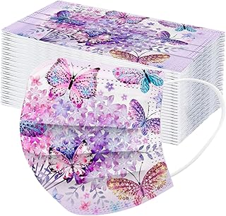 DeaAmyGline 50 Stück Mundschutz Erwachsene mit Schmetterling Blumen Motiv Schwarz Einweg 3-lagig Atmungsaktiv Mund-Nasen-Schutz Multifunktionstuch Tücher Bandana Halstuch Schals für Frauen Männer