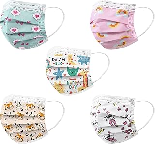 DeaAmyGline 50 Stück Mundschutz Kinder Einweg 3-lagig mit Motiv Bunt Mund Nasenschutz Niedlich Bedruckt Atmungsaktiv Mund-Tuch Bandana Halstuch für Mädchen Jungen