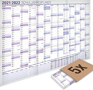 5er-Pack: Yohmoe® XXL Schuljahresplaner 2021/2022 mit Ferientermine und Stundenpläne, Lehrerinnen- und Lehrerkalender für die Wand, Schülerkalender 2021 2022