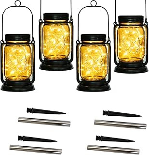 YUEFA Solar-Laterne im Einmachglas-Design, wasserdicht, zum Aufhängen, Solar-Gartenlichter, Laternen, für DIY-Festival, Garten, Terrasse und Außenbereich, große Rasendekoration (4 Stück)