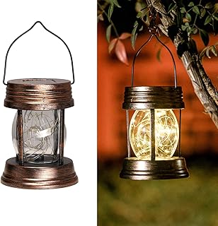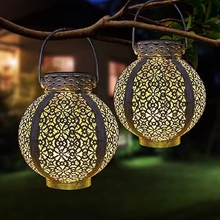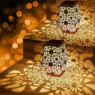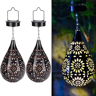 2 x Solar-Laternen-Lichter, zum Aufhängen im Freien, Metall-Lampe für Terrasse, Terrasse, Dekoration, Metall, Hof, Kunst, Gartenzubehör, Outdoor-Dekorationen für Veranda, Hof, Rasen, Hof