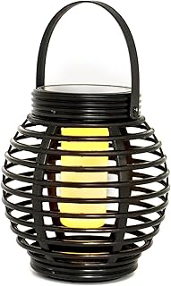 Rattankorb Solar-Laternen für den Außenbereich, wasserdicht, Kunststoff, hängende Laterne, Dekoration, LED, flackernde Lichter Terrasse, Garten, Hof, Gehweg und Tischdekoration, schwarz, 1 Stück
