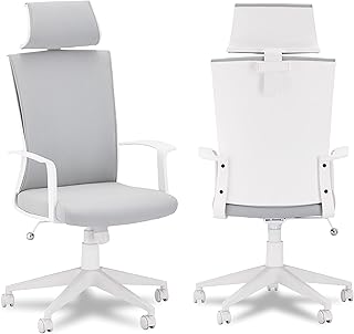 Furnhouse Ibbe Design Ergonomisch Weiss Grau Bürostuhl Schreibtischstuhl Bolero mit Armlehne, Höhenverstellbar, Drehstuhl, Belastbar bis zu 150kg, 60x61x130 cm